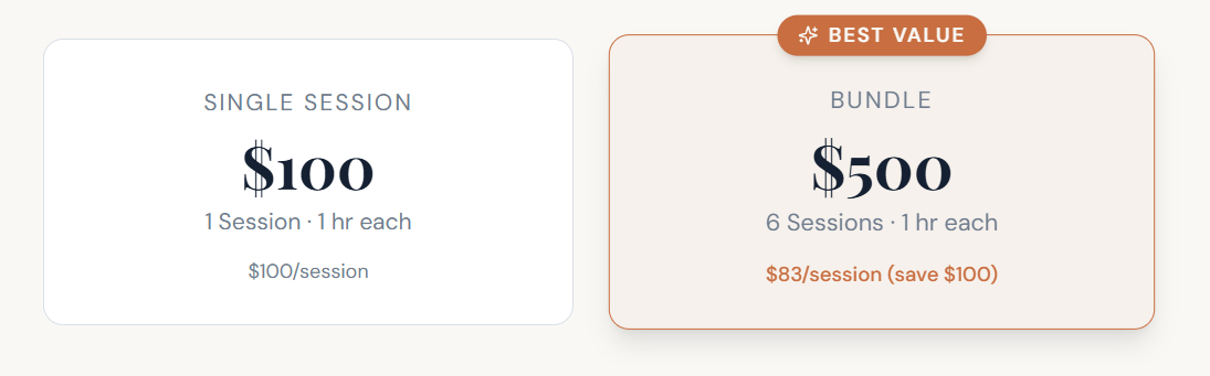 I want to be your partner to develop your confidence, align personal and career goals together, and create actionable plans to help you achieve your life goals. Whether you’re searching for a more fulfilling career path, trying to navigate a job transition, or just want some external perspective on your career - there’s no better time than now.